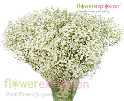 While baby’s breath (also referred to by its scientific name, gypsophila) can’t last long without water, it dries very well without losing its bright, full appearance. In water, baby’s breath has a vase life of about five to seven days, but with proper care and handling can last up to ten days. The longstanding popularity of baby’s breath goes far beyond the flower’s utility as bouquet fillers. Gypsophila is incredibly versatile and can be used on their own or as part of other flower arrangements for weddings and other event centerpieces, bouquets, or as a thoughtful gift to tell someone you care. Find your perfect baby’s breath While baby’s breath may seem like a simple, understated bloom, gypsophila is actually available in a variety of specific types. Here at Flower Explosion, we offer a wide selection of baby’s breath, including Million Star Gypso, Mirabella Gypso, and New Love Gypso. Each type of baby’s breath is unique, understated, and romantic, and all convey similar meanings. Baby’s breath is ubiquitous with an everlasting and undying love (romantic, familial, and platonic), purity, freedom, and innocence. Because of these connotations, baby’s breath is regularly used for weddings, baby showers and christenings, and as part of flower arrangements with other blooms that say “I love you” such as red roses, carnations, and tulips.