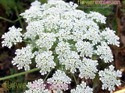 Ammi majus, also known as Queen Anne’s lace, is a wonderful white bouquet filler and spectacular arranged in cloud of white on its own. This dainty little flower with its lacy heads of pure white complements any color scheme in the vase with its long sturdy stems and large full flowers.