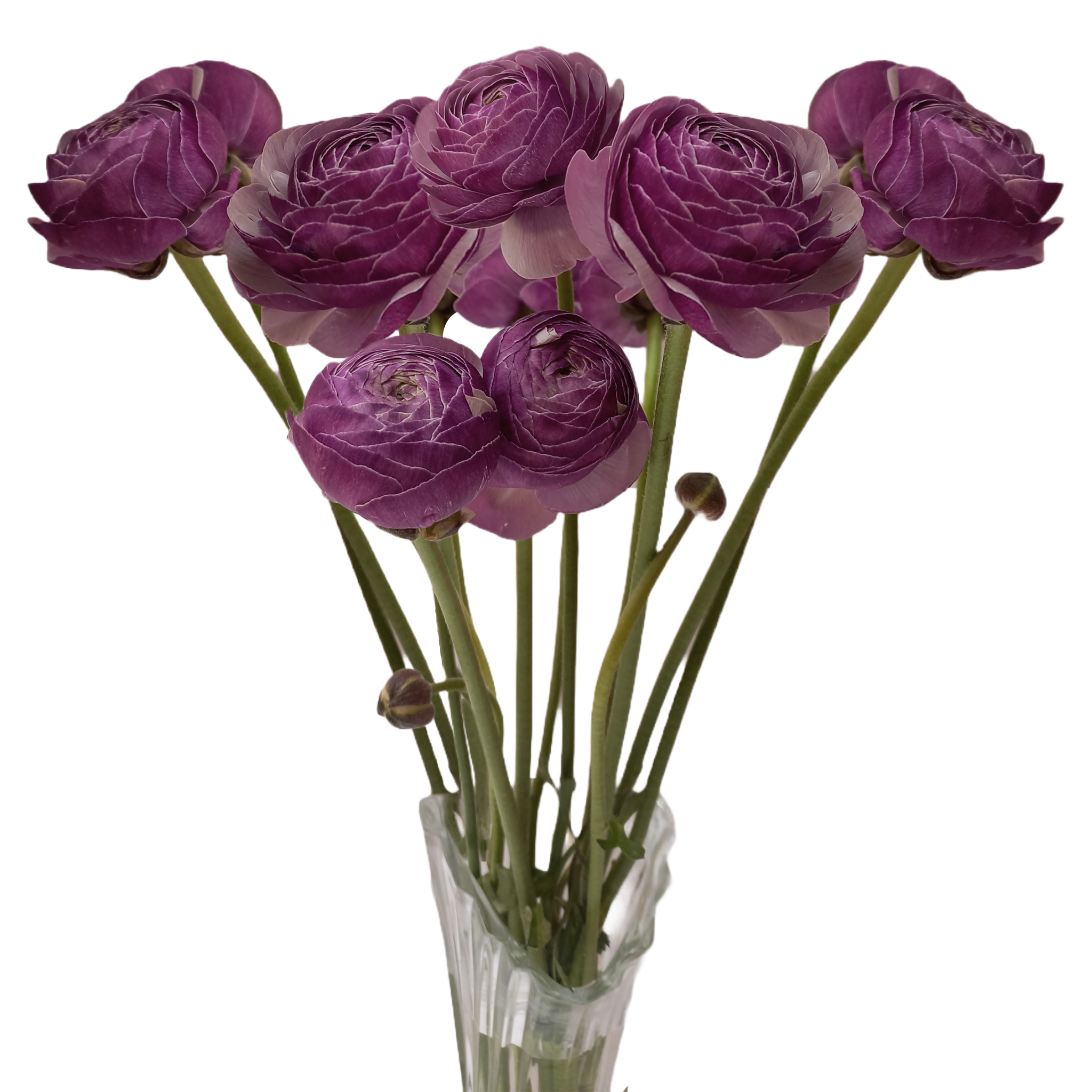 Experience the enchanting beauty of Cloni Nonno Italian Grape Ranunculus. The clusters of eye-catching purple petals and delicate textures make them the perfect choice for bouquets and floral arrangements. Bring out the best in your designs with these captivating blooms. Average stem length: 10 to 16 inches