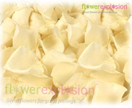 We are experts on Rose Petals! At Flower Explosion you will find great and fragrant collections of bulk fresh rose petals. Live and create the romantic moments that are only seen in movies. Make your wedding unique, these elegant cream petals are the most evocative detail that you can add to your special occasion. We offer packs of 4 bags (around 4,000 petals) for a small celebration or a romantic evening, 7, 13 and even 26 bags (about 26,000 petals) for weddings and similar events. Please note that the amount of petals indicated per bag is an estimate based on an average weight of 250 Gr per bag. Depending on the petals size there may be a variation of the number of petals per bag of more or less 20%.